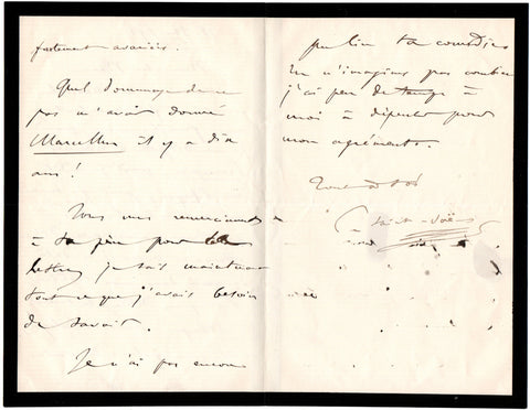 2½ pages 8vo in French on mourning paper, n.p., 18 February 1891.