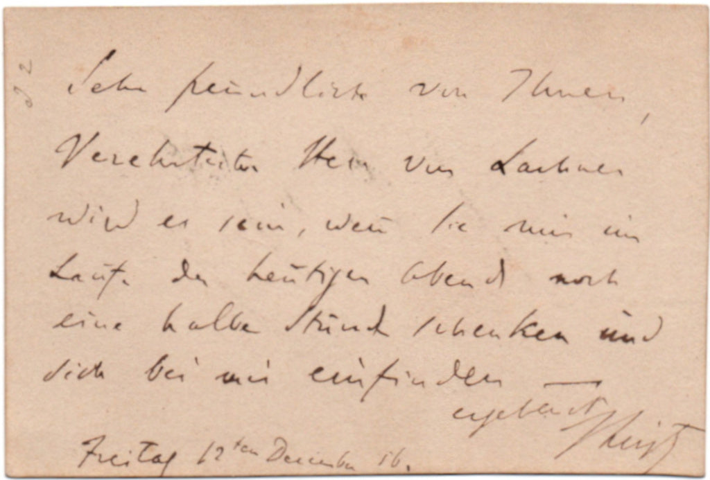 Autograph Message Signed (“ F Liszt”) to composer and conductor Franz von Lachner, asking him to come and visit him that evening.